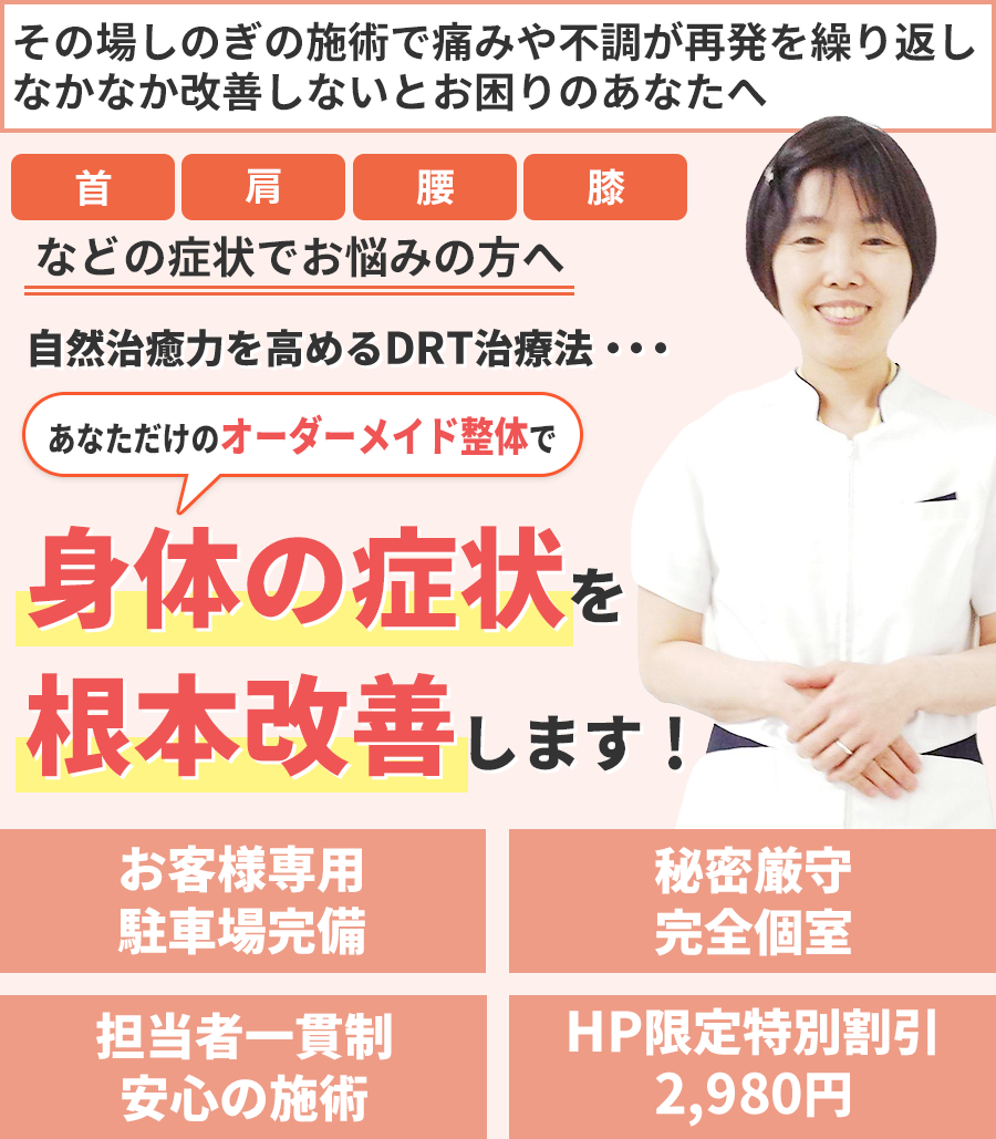 背骨を揺らす「DRT整体」で自然治癒力を高め改善へ導くから